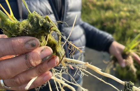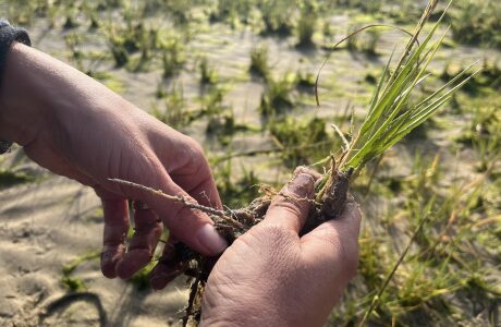 La spartine anglaise est une plante exotique envahissante qui progresse depuis plusieurs années sur le Bassin. Elle colonise massivement le haut des vasières et menace l’équilibre des milieux naturels.